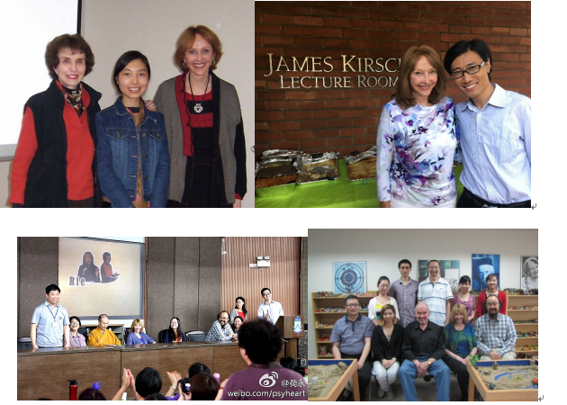 如同多拉·卡尔夫与荣格,瑞·米歇尔对中国文化也一往情深;多次参与“心理分析与中国文化国际论坛”,以及全国心理分析与沙盘游戏大会。作为洗心岛文化与东方心理分析研究院特聘导师,不仅参与我们心理分析与沙盘游戏专业训练,个案分析与督导,而且,也参与我们心理分析与沙盘游戏专业硕士和博士的论文指导与学术研究。作为美国大学的资深教授和院长,她也曾邀请我和高岚,在洛杉矶大学北岭分校做学术报告,为我们英文论文和著作的发表与出版担任编辑;她也将其自己的论文与著作版权给与洗心岛文化做中文出版,如《沙盘游戏:过去、现在与未来》,以文会友,以友辅仁。