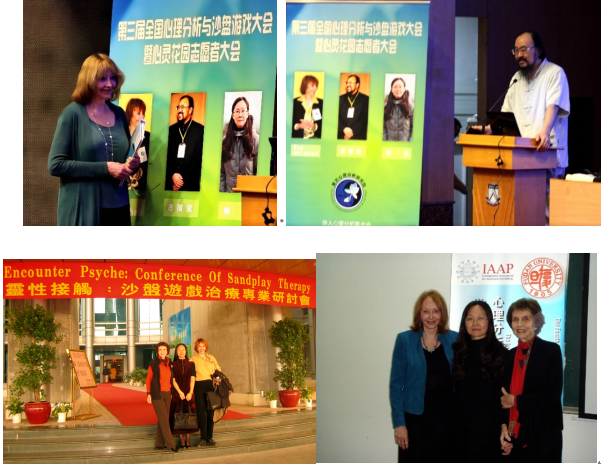 2005年,瑞·米歇尔与哈里特一起主编《沙盘游戏中的督导》(Supervision of Sandplay Therapy),约我与高岚提供了来自我们中国沙盘游戏团队的个案与督导,该著作由劳德利奇出版社2007出版,受到普遍关注。 2015年《沙盘游戏》中文期刊创刊,瑞·米歇尔与哈里特一起写下热情洋溢的祝贺与序言。她们盛赞沙盘游戏在中国的发展,中国沙盘游戏团队的工作与贡献,学术与公益,尤其是将沙盘游戏带入中国的大学课程,如在华南师范大学,复旦大学与澳门城市大学,进行对心理分析与沙盘游戏的深入研究,支持与提升了国际沙盘游戏治疗的学术水准;以心理分析与沙盘游戏为主要方法和技术,在中国孤儿院建心灵花园以帮助孤儿的心理发展,以及参与汶川大地震和玉树大地震的心理救援……在这篇序言的最后,瑞·米歇尔与哈里特说:“申荷永与高岚及其团队,为将沙盘游戏引入中国及其发展做出不懈的努力和奉献,他们的愿景也激励并拓展了我们的视野,为东西方带来了心与魂的交融。”在瑞·米歇尔与哈里特看来,中国《沙盘游戏》期刊,彰显心灵的洞察与领悟,将极大促进国际沙盘游戏的学术发展。