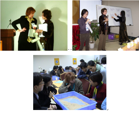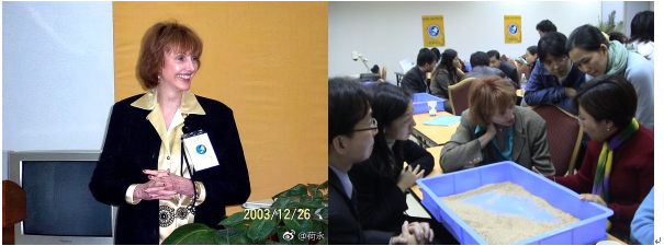 2003年,第17届国际沙盘游戏治疗大会在美国西雅图举行,我有大会主场与主题演讲(“沙盘游戏与中国文化”);大会期间,ISST组织在中国发展的特别会议,便有瑞·米歇尔老师的参与和支持;两任ISST主席,格雷琴·赫格曼(Gretchen Hegeman)和茹思·安曼,ISST奠基会员凯·布莱德温(Kay Bradway),以及哈丽特·弗里德曼老师等也都有参加,为沙盘游戏治疗在中国的发展奠定基础。 2005年,ISST第18届大会在意大利罗马召开,瑞·米歇尔主持高岚的大会主场主题演讲,她对沙盘游戏治疗在中国的发展寄予厚望。2009年,ISST第20届大会在日本京都举行,我主持了瑞·米歇尔的主题报告:“沙盘游戏,心灵旅程”,印象深刻,获益匪浅。我也有大会主场报告,以汶川大地震中的沙盘游戏工作为背景,集中于沙盘游戏中的天使意象及其意义。